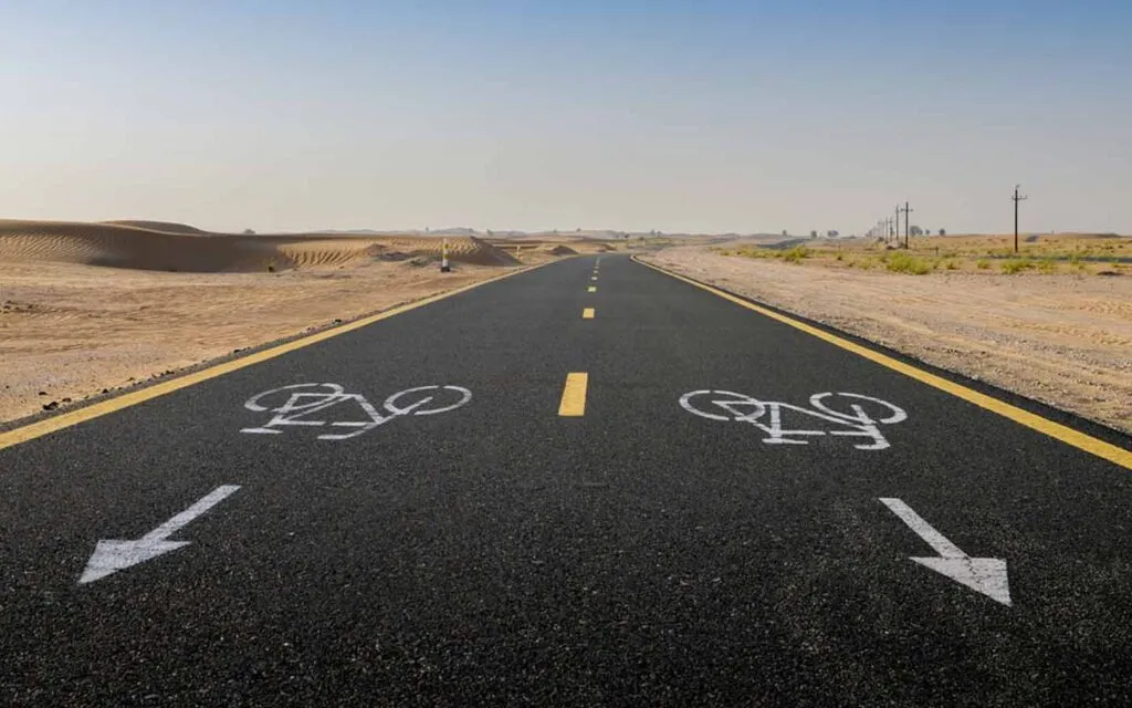 Unlike city cycling routes, the Al Qudra Cycle Track in Dubai offers riders a unique desert experience. The path runs through vast open desert landscapes that provide stunning views of golden sand dunes.