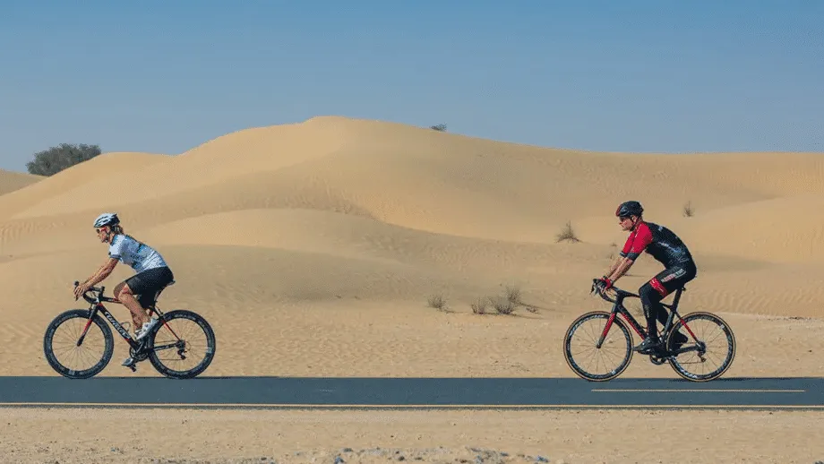 Many cycling groups organize group rides on the Al Qudra Cycle Track in Dubai during weekends. Riders often start around sunrise to avoid midday heat.