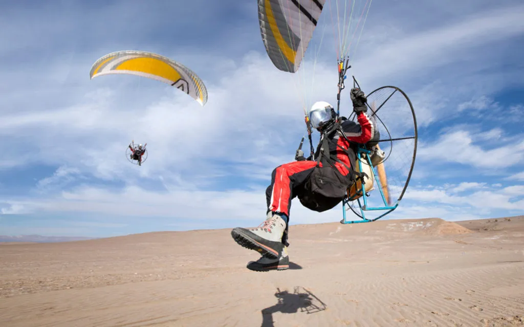 Glide above dunes and wadis with a paramotor strapped to your back. Paramotoring offers stunning views with less adrenaline than skydiving but with all the magic of flight.