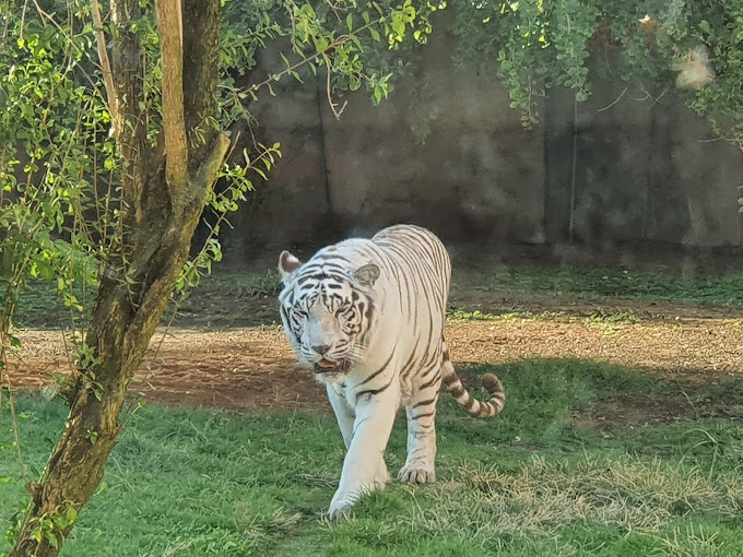 Among the wide variety of species living the the Al Ain Zoo, there is a rare white lion, a Nubian giraffe, spotted leopards, crocodiles, giant turtles, hippos, many species of rare birds in the aviary, and a even a colony of penguins.