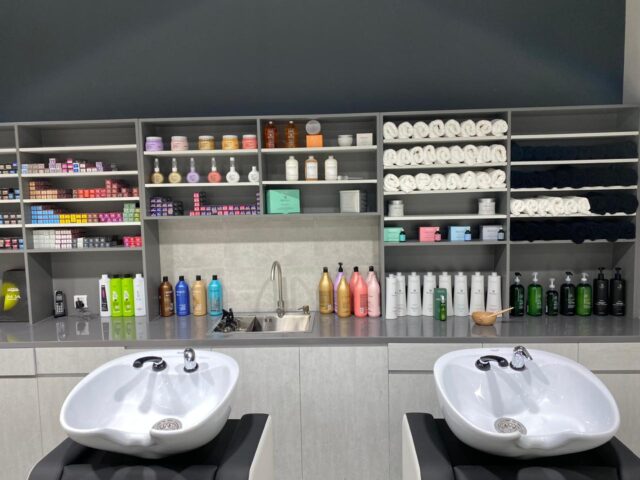 The salon also features a retail store that carries a wide range of high-end cosmetics, hair, and skincare products.