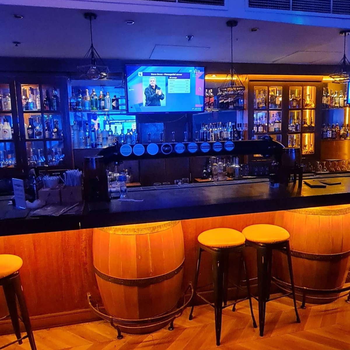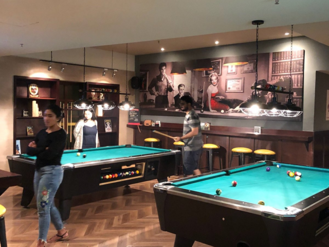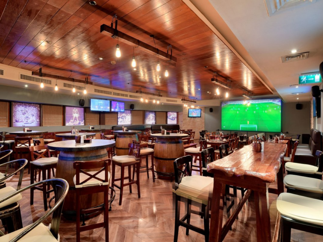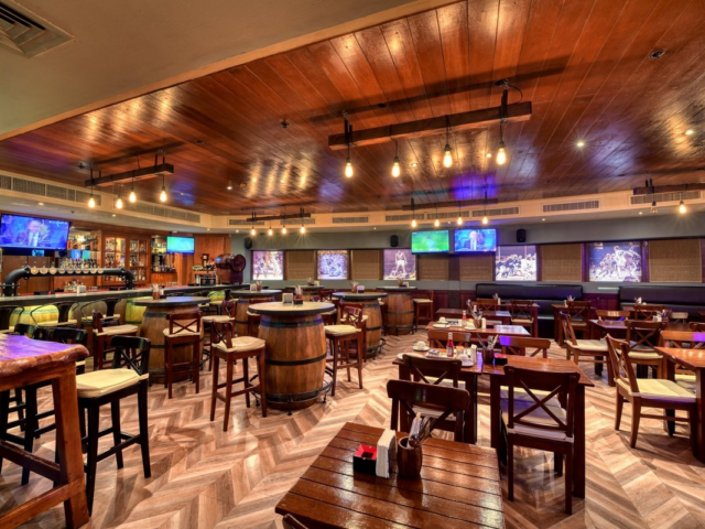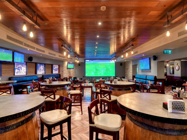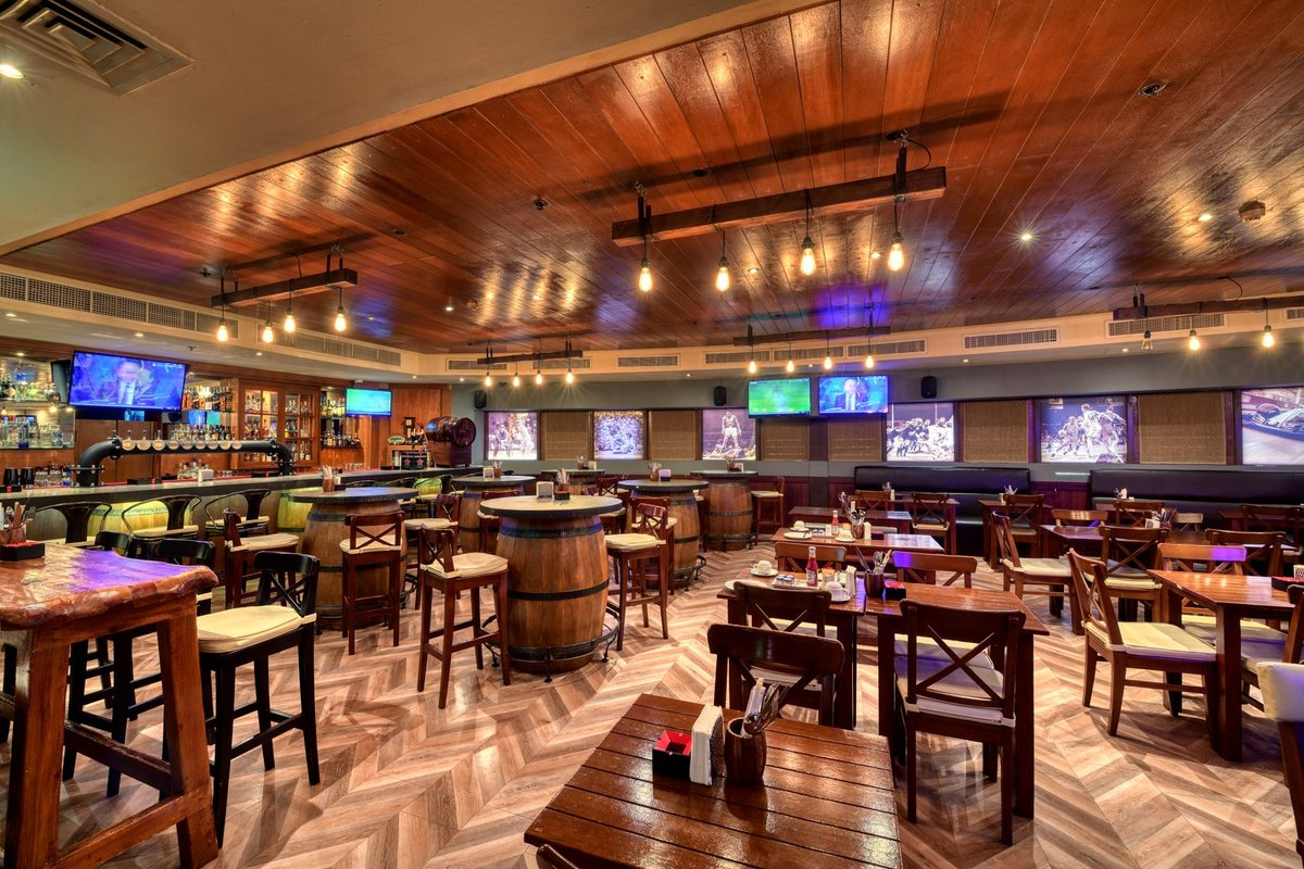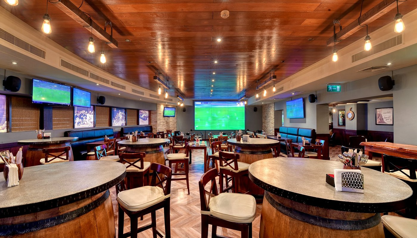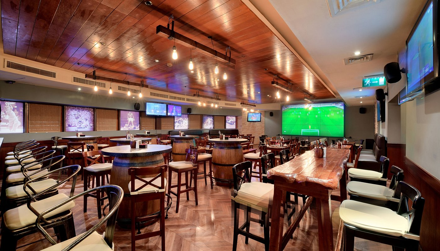 Sports fanatic’s favorite hub, equipped with widescreen TVs showing daily games in live telecast.