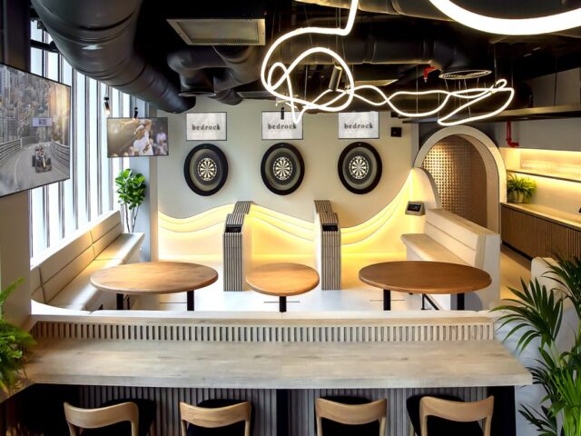 For those who love a good sports bar, Pier 7 has a new playground that’s perfect for kicking back with friends. Bedrock has officially opened its doors. Guests will be treated to no less than 20 screens around the venue, showing the latest live games, matches and unmissable sporting moments. Additionally, you can get in on the action with indoor games such as the latest technology in darts and the region’s best indoor golf simulator for some hearty competitive socialising. Inside the venue, an area called ‘The Bunker’ is home to the X-Golf simulator. Here you’ll find the latest indoor golf technology, and compete against other guests on 50 of the world’s top courses. If you just fancy a swing, there’s also a driving range option which is perfect for perfecting your skills while the heat rages on outside.