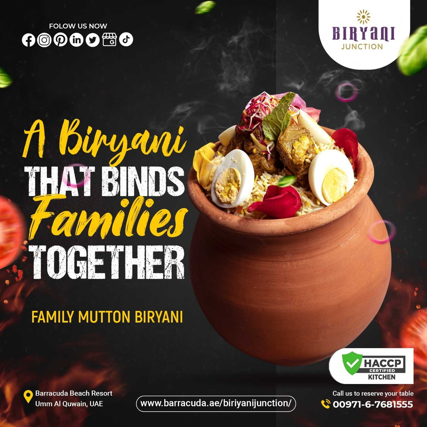 Biryani Junction, where authentic Indian delicacies meet a perfect family getaway. An exciting destination by the cool blue waters of pristine Umm Al Quwain lagoon. Easily reachable from Dubai, Biryani Junction provides a delectable experience with a grand spread of culinary creations for you, your friends and family.