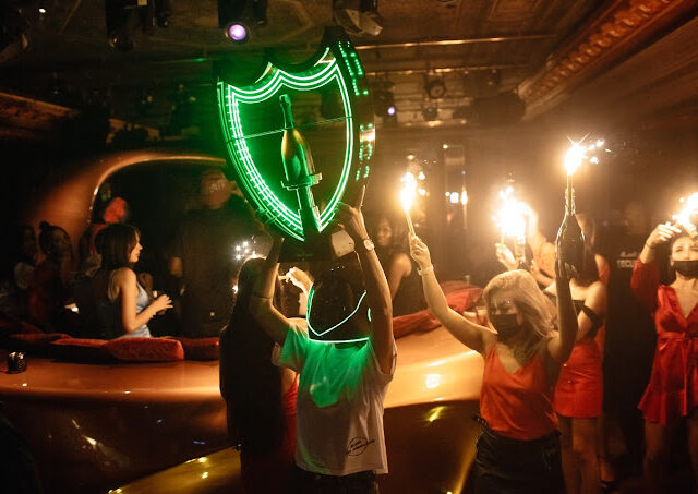 Its’ intricate design creates a surreal space that is all at once exuberant, artistic and unconventional. Expect the unexpected as you access the custom-designed Bling’d out entrance to an intimate space that boasts of a unique 18th century baroque style, including a hand-painted Swarovski encrusted mural, antique candelabrums and elaborate crown molding throughout – creating a lavish backdrop for an after-hours clubbing experience like no other