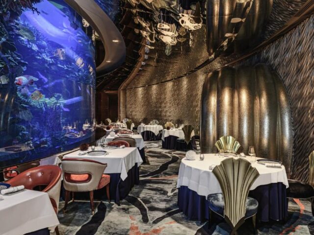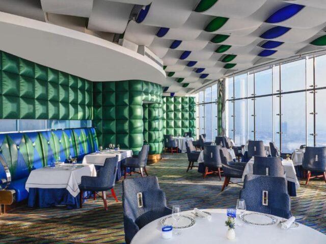 The Sky View Bar is suspended 200 m above sea level where guests can enjoy afternoon tea and cocktails. Al Muntaha is the Burj Al Arab’s signature fine dining restaurant serving contemporary European cuisine. Located directly on the beach, Villa Beach restaurant is open daily for lunch and dinner.