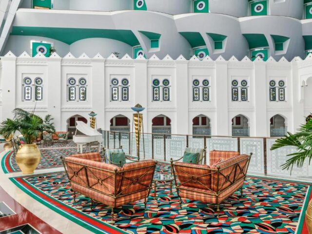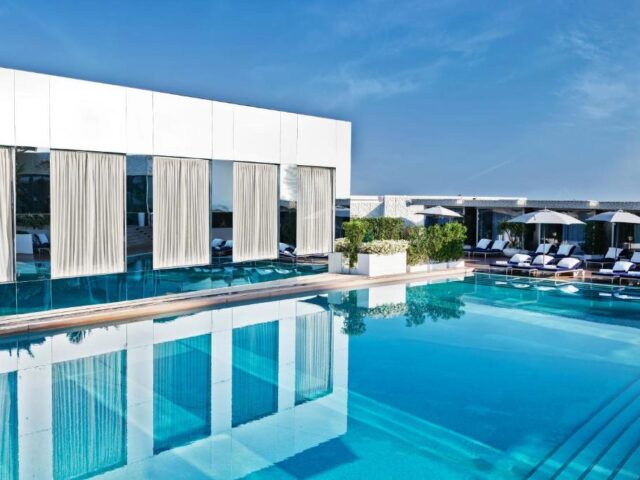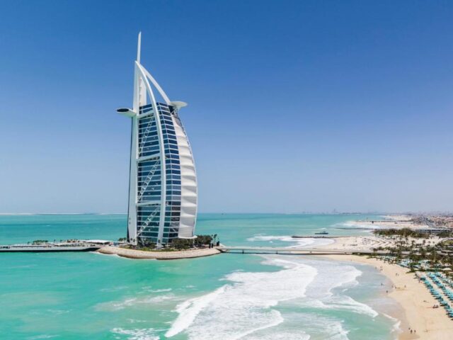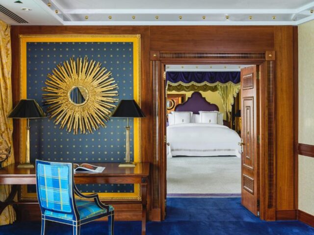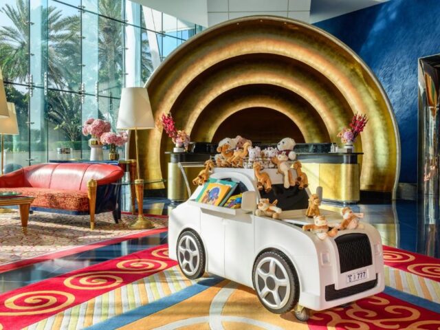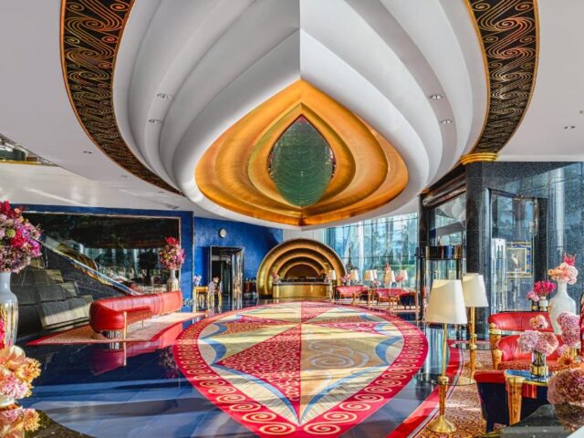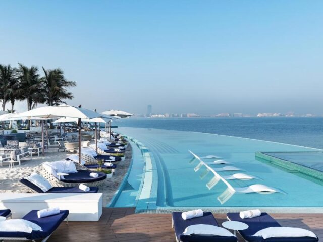 Located on its own island, Burj Al Arab Jumeirah features suites overlooking the sea, 9 signature restaurants and a full-service spa. Guests may arrive at the property by chauffeur-driven fleets of Rolls-Royce’s or alternatively by a dedicated helicopter transfer service. The terrace offers two swimming pools, 32 luxury cabanas, a restaurant and a bar.