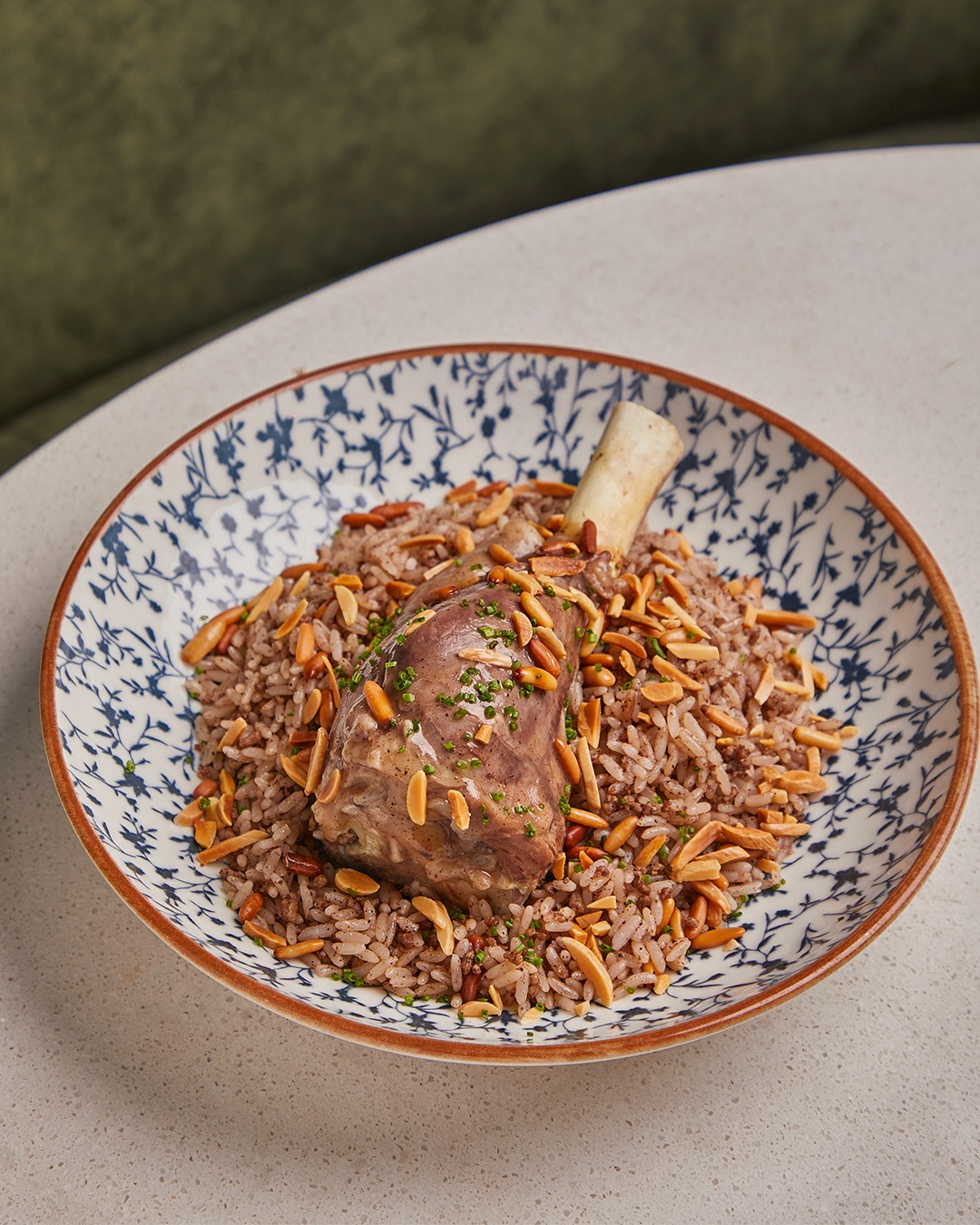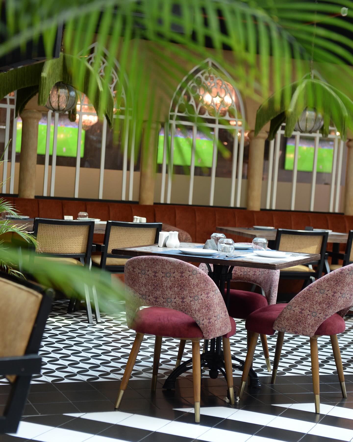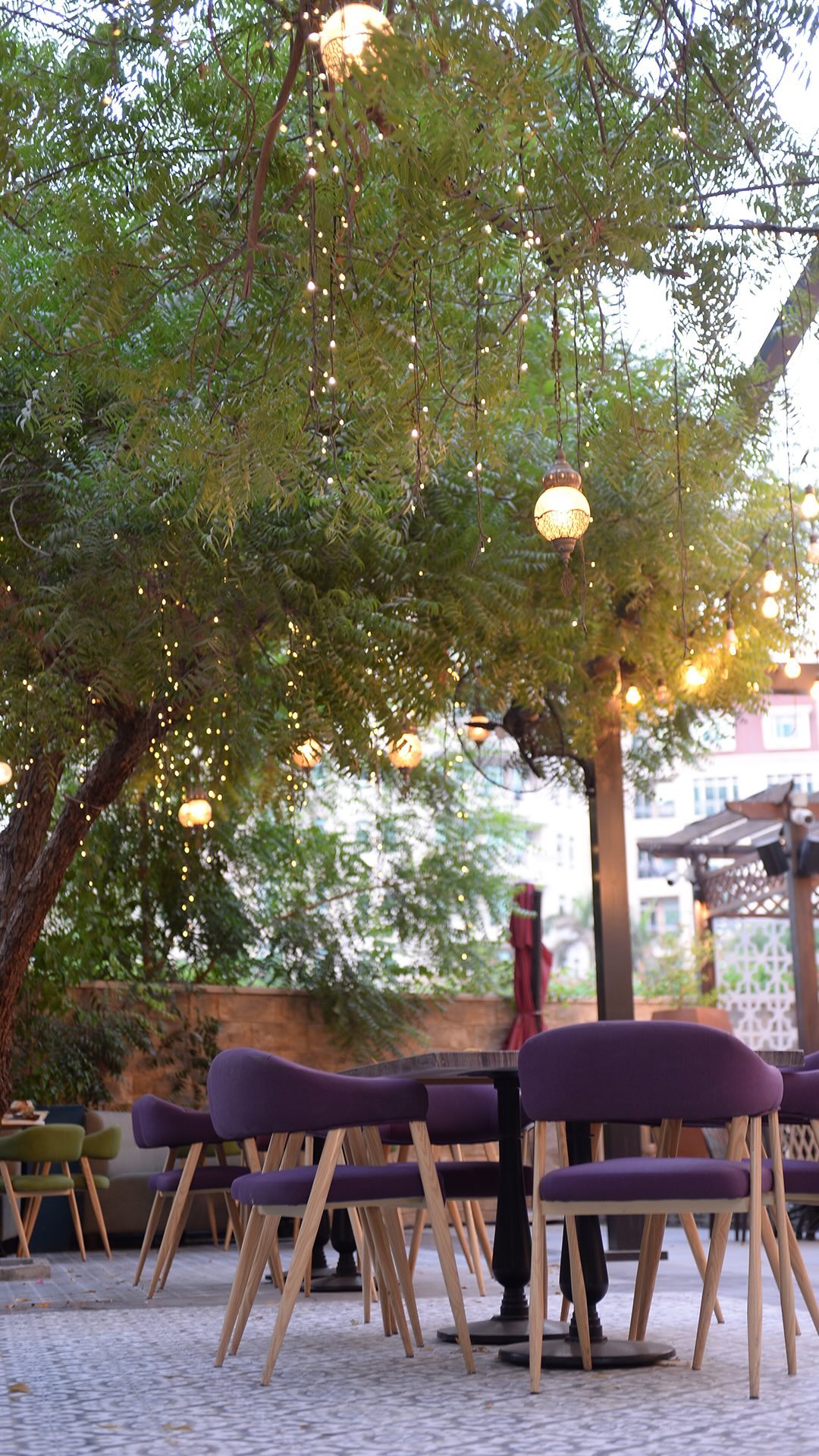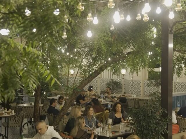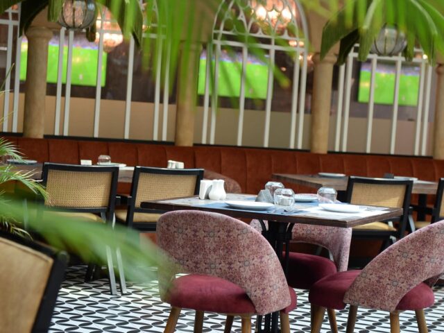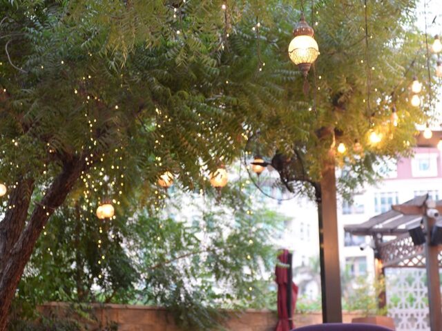A stunning view of the Burj Khalifa can be enjoyed from the beautiful outside garden area, while a huge indoor area is enhanced by a traditional ceramic water fountain and an olive tree, evocative of the 1950s, the golden age of Beirut. It is a tribute to an age gone by when the city teemed with life and culture. Black and white Beirut portraits of the era are hung on the round see-through domed ceiling which also allows the sun’s rays to flow into the main room and offers relaxing outdoors views.