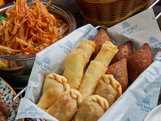 Hot and cold beverages include a twist on popular drinks like Tiramisu Latte, Date Frappucino, Oreoccino and Caramel Peanut Butter Milkshake. Café Beirut cocktails are delicious so why not try Beit El Din, made from fresh kumquat, passion fruit syrup, brown sugar and ginger ale or Baalbek, made from fresh grapefruit, aloe vera, lime juice and sparkling sugar, or perhaps one of the healthy detox juices, seasonal fresh juices, traditional Beiruti Sharab, coffee with spirits, a superb selection of coffee or something from the alcoholic menu.