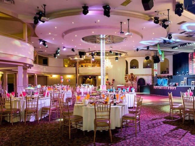 The venue has a capacity of up to 1,500 guests and is equipped with a variety of amenities, including a sound system, a projector, and a dance floor.