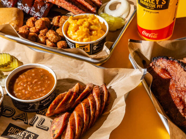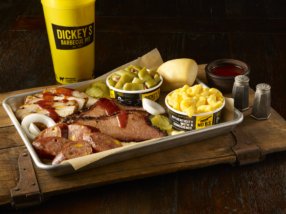 Dickey’s Barbecue Pit is a true American success story. In 1941, Travis Dickey, a WWI veteran, opened the first Dickey’s Barbecue Pit in Dallas, Texas. Dickey was a true Texas character blessed with the gift of gab and the love of authentic, slow smoked barbecue. In the beginning, Dickey’s Barbecue Pit was truly a family operation with Travis working the block and Miss Ollie Dickey serving sandwiches. Space on the restaurant sign was rented out to help pay the start up costs for the restaurant and the menu was limited to beef brisket, pit hams, barbecue beans, potato chips, beer, bottled milk and sodas.