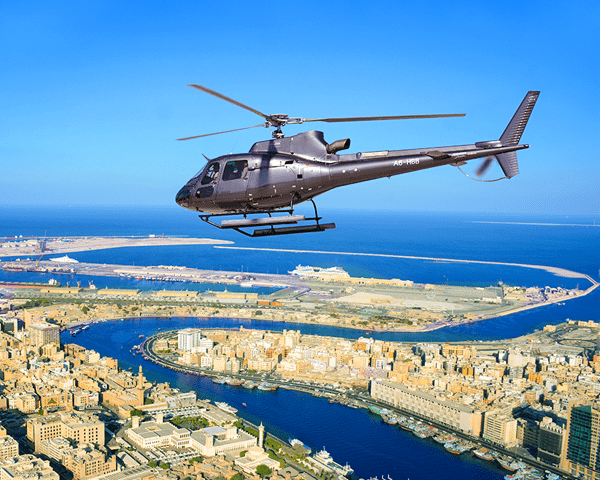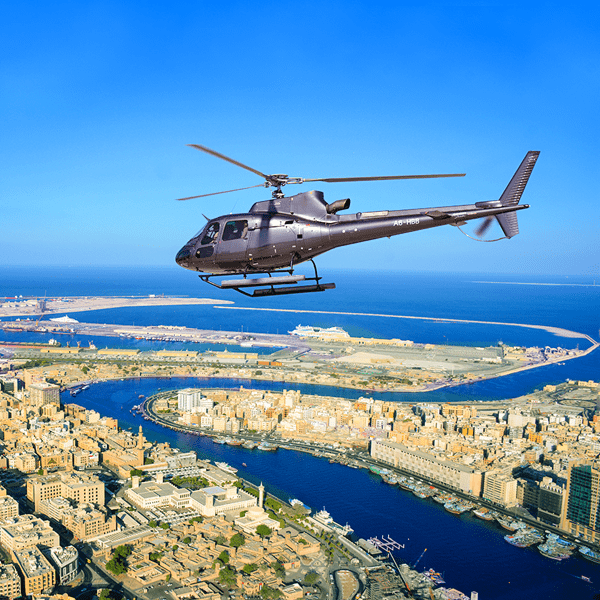 The Helicopter tour of Dubai comprises of a 15 minutes tour by helicopters and this is the most highly sold helicopter tour package, which can accommodate 4 – 6 guests (depending on the models of the helicopter and the weight of the passengers) in each flight, so that the guests feel the highly personalized service as the Capitan gives a briefing on the and marks of Dubai.