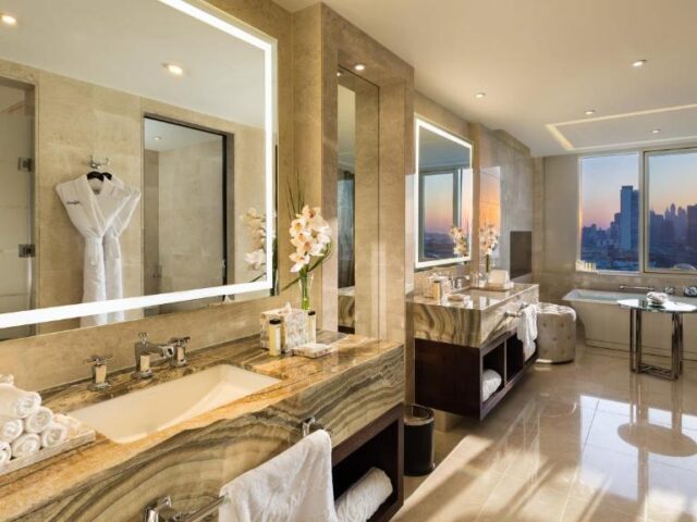 Kempinski Hotel’s dining options include Aspen by Kempinski, which serves high tea each afternoon, and Salero Tapas & Bodega which features authentic Spanish cuisine. Poolside drinks and shisha are available at Mosaic Chill. Offering a truly Levantine dining experience, Olea will take guests on a sensory discovery of the Levant region. And right next door, a trendy cocktail & lounge bar, Noir, will boast the best cocktail program in the city.