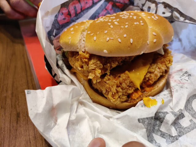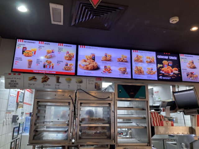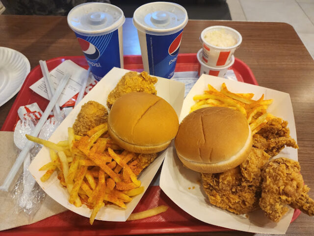 KFC’s original product is pressure-fried chicken pieces, seasoned with Sanders’ recipe of 11 herbs and spices. The constituents of the recipe are a trade secret. Larger portions of fried chicken are served in a cardboard “bucket”, which has become a feature of the chain since it was first introduced by franchisee Pete Harman in 1957. Since the early-1990s, KFC has expanded its menu to offer other chicken products such as chicken fillet sandwiches and wraps, as well as salads and side dishes such as French fries and coleslaw, desserts, and soft drinks; the latter often supplied by PepsiCo. KFC is known for its slogans “It’s Finger Lickin’ Good!”, “Nobody does chicken like KFC”, and “So good”.