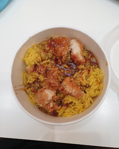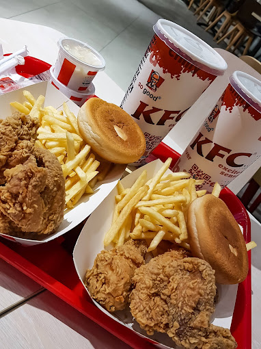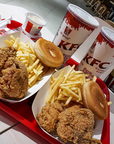 KFC’s original product is pressure-fried chicken pieces, seasoned with Sanders’ recipe of 11 herbs and spices. The constituents of the recipe are a trade secret. Larger portions of fried chicken are served in a cardboard “bucket”, which has become a feature of the chain since it was first introduced by franchisee Pete Harman in 1957. Since the early-1990s, KFC has expanded its menu to offer other chicken products such as chicken fillet sandwiches and wraps, as well as salads and side dishes such as French fries and coleslaw, desserts, and soft drinks; the latter often supplied by PepsiCo. KFC is known for its slogans “It’s Finger Lickin’ Good!”, “Nobody does chicken like KFC”, and “So good”.