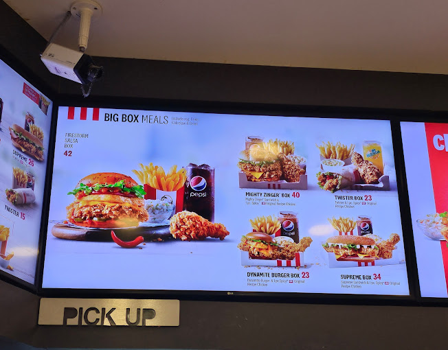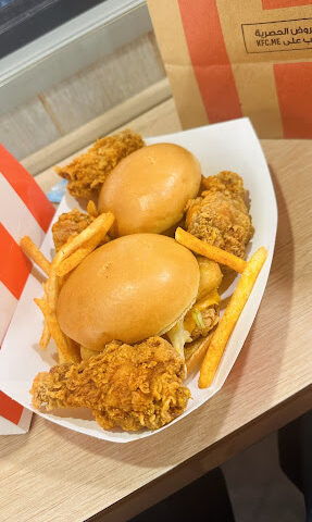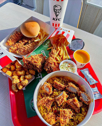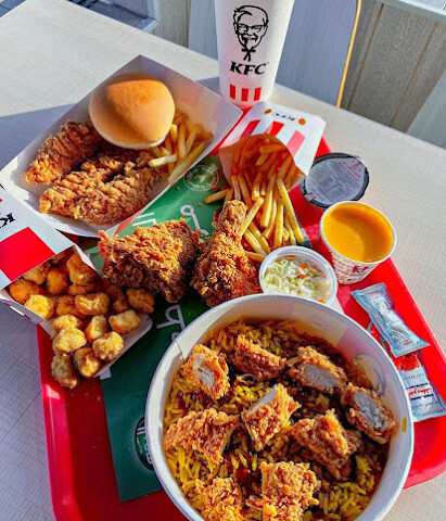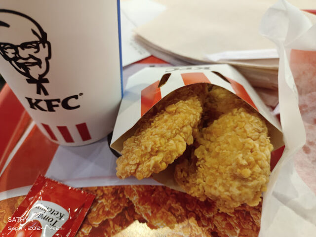 KFC’s original product is pressure-fried chicken pieces, seasoned with Sanders’ recipe of 11 herbs and spices. The constituents of the recipe are a trade secret. Larger portions of fried chicken are served in a cardboard “bucket”, which has become a feature of the chain since it was first introduced by franchisee Pete Harman in 1957. Since the early-1990s, KFC has expanded its menu to offer other chicken products such as chicken fillet sandwiches and wraps, as well as salads and side dishes such as French fries and coleslaw, desserts, and soft drinks; the latter often supplied by PepsiCo. KFC is known for its slogans “It’s Finger Lickin’ Good!”, “Nobody does chicken like KFC”, and “So good”.