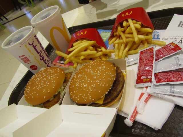 McDonald’s is the world’s largest restaurant chain by revenue, serving over 69 million customers daily in over 100 countries[11] across 37,855 outlets as of 2018. Although McDonald’s is best known for its hamburgers, cheeseburgers and french fries, they feature chicken products, breakfast items, soft drinks, milkshakes, wraps, and desserts. In response to changing consumer tastes and a negative backlash because of the unhealthiness of their food,[14] the company has added to its menu salads, fish, smoothies, and fruit. The McDonald’s Corporation revenues come from the rent, royalties, and fees paid by the franchisees, as well as sales in company-operated restaurants. According to two reports published in 2018, McDonald’s is the world’s second-largest private employer with 1.7 million employees (behind Walmart with 2.3 million employees).