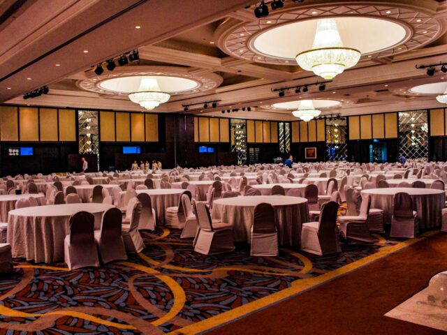 The ballroom has a capacity of up to 1,200 guests and is equipped with a variety of amenities, including a sound system, a projector, and a dance floor.