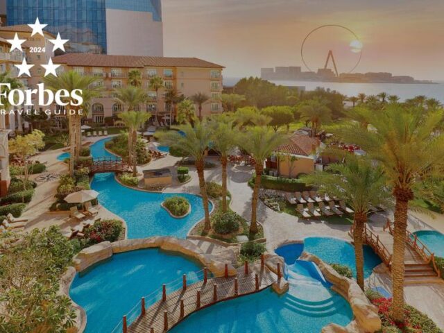 Located on private beachfront along the famous JBR Walk, The Ritz-Carlton offers first class spa facilities and six outdoor swimming pools for adults and children. The lively Dubai Marina is 5 minutes’ stroll from the resort.