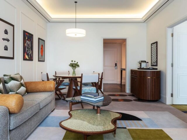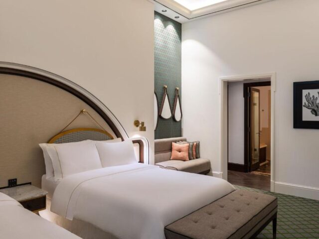 Rooms and suites include free WiFi, a Nespresso machine, spacious seating area, and a marble bathroom with luxury bath amenities. Modern and classical design with high ceilings and grand mirrors are also featured in each unit.
