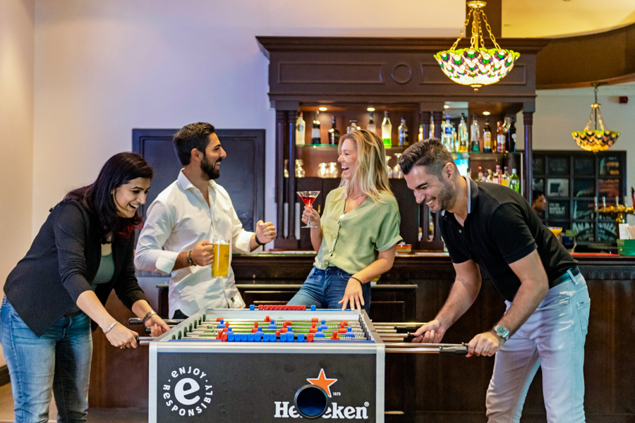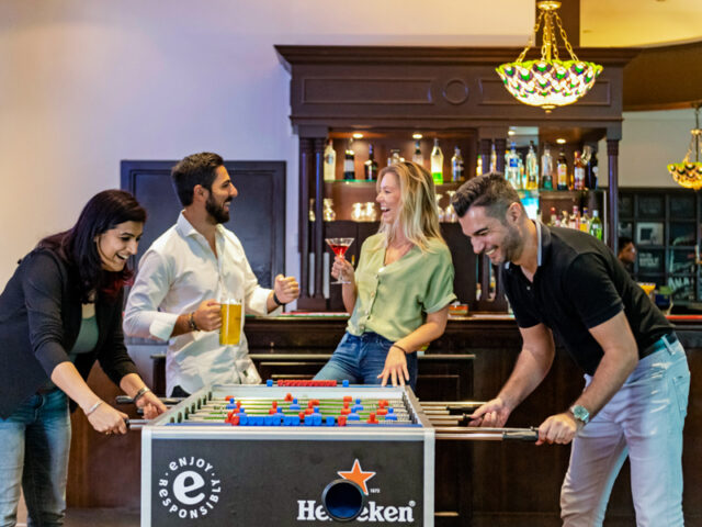 At Two Guineas, you can expect a warm and inviting atmosphere, designed to replicate the ambiance of a traditional English pub. The pub might feature classic wooden furnishings, a cozy bar area, and comfortable seating arrangements where patrons can relax and enjoy their time. As a sports pub, Two Guineas would likely have multiple screens or projectors strategically placed throughout the venue, ensuring that guests have a clear view of live sporting events. Whether it’s football, rugby, cricket, or other popular sports, the pub would prioritize providing a lively and engaging environment for sports enthusiasts to cheer for their favorite teams.