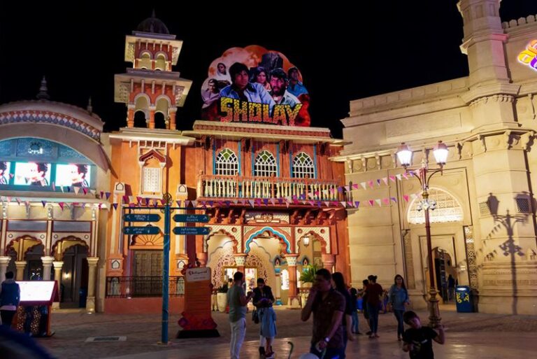 Bollywood Park Dubai is famous for its live entertainment, including stage shows, character encounters and stunts. The park also has some thrilling rides like the Mumbai Express roller coaster and Sholay: The Duel Flying Theater.
